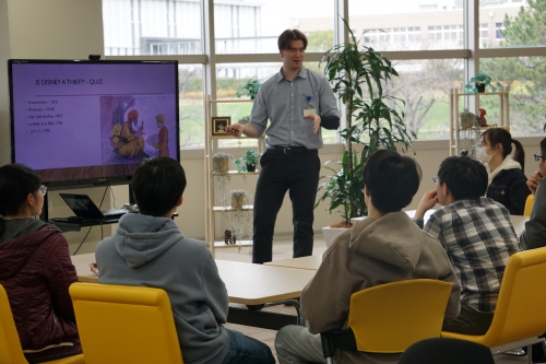 α棟2階にあるグローバルスチューデントラウンジは、本学学生のための国際交流拠点です。ここでは留学生との交流や言語学修支援、海外留学に関する情報提供を行っています。 また、英語ネイティブ職員が常駐しており、国際学会発表準備や英語論文の添削、日常英会話などの無料レッスンを受けることが出来ます。