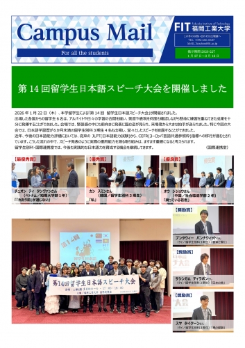 2026年1月22日(木)、本学留学生による「第14回 留学生日本語スピーチ大会」が開催されました。