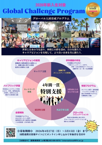 国際連携室では、2026年度新入生対象:Global Challenge Program 2026の参加者を受付中です。